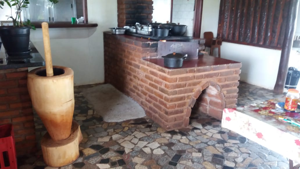 Almoço feito no fogão lenha, bem temperada, ambiente agradável e vem recepcionado.